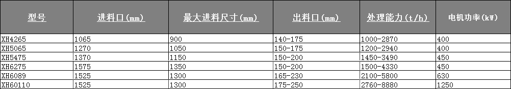 XH 旋回式破碎機(jī)擁有精細(xì)的破碎腔設(shè)計(jì),確 保更強(qiáng)的生產(chǎn)能力、更大的進(jìn)料粒度及更長(zhǎng)的襯板 壽命;大傾角和長(zhǎng)破碎面設(shè)計(jì),配合優(yōu)化設(shè)計(jì)的沖 程和轉(zhuǎn)速,使破碎機(jī)具有超強(qiáng)的破碎能力,適用于 各種粗碎破碎作業(yè)需求;通過(guò)簡(jiǎn)單更換偏心套,就 可以改變破碎機(jī)的處理能力,以滿足不同的破碎工 藝需求。
